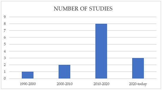 Due to the large number of analyzed studies regarding the prediction of heating and electrical energy consumption in schools, a graphical representation of the published analyzed studies regarding the period of publication and a graph on the number of studies with regards to the models used in the study are provided in Figure 1 and Figure 2.