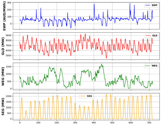 EWP, GLD, WEG, and SEG at hourly interval in the state of New South Wales, Australia (16 May 2021–14 June 2021) from the Australian Energy Market Operator (AEMO) [64] and Open Platform for National Electricity Market (OpenNEM) [65].