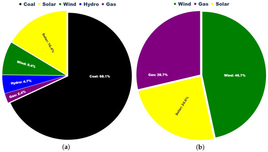 Different types of sources for electricity generation in NSW (a) and SA (b).