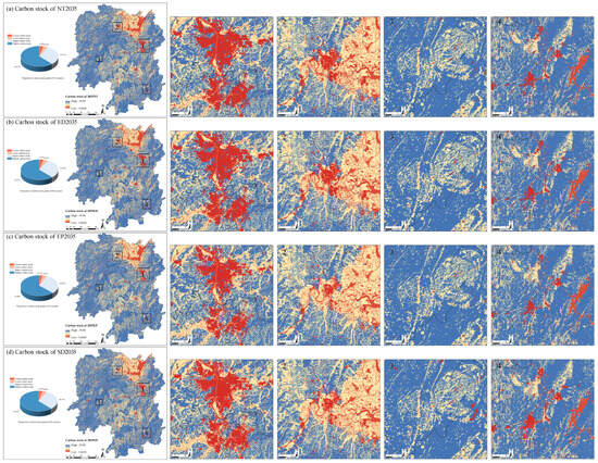 With rich forest resources and representative forest wetland ecosystems, central and southern China are important ecological barriers and carbon sink areas. Forests can act as significant carbon reservoirs and sequesters, contributing to the national goal of net-zero carbon emissions. China’s 14th Five-Year Plan states that by 2035, national land space will be developed and protected under a spatial pattern [35]. In this context, the ecological functions of national land space and its economic and social functions should be defined. Indeed, after peaking, this is a key period for China to achieve a stable decline in carbon emissions, representing an important milestone for China to move toward carbon neutrality. As a representative region of central and southern China, Hunan Province is an ecological area of global importance with high levels of biodiversity and ecosystem service functions. However, rapid urbanization has severely impacted the ecological environment, resulting in notable changes in land use and significant fluctuations in carbon stock and ecosystem function.