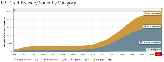 Beer is the most popular alcoholic beverage globally, with craft beer representing a growing segment of the market with significant economic impact. In the U.S. alone there were 9736 craft breweries as of December 2024, which employed 460,000 people and provided USD 77.1 billion to the U.S. economy (not including indirect jobs and revenue) [