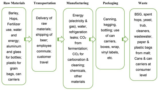 5]. At the same time, beer manufacturing is a water- and energy-intensive process, which generates both liquid and solid waste and uses toxic chemicals for cleaning and sanitizing. Smaller craft breweries with production of less than 1000 barrels per year (known as ‘microbreweries’) are significantly less efficient than larger breweries [