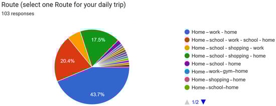 In the context of Riyadh, based on the research literature review, observations, qualitative data, and open discussions with the research respondents provide empirical data on women’s mobility in Riyadh, the traditional “home–work–home” framework has indeed been male-centric, reflecting longstanding cultural norms and infrastructure priorities. However, 43% of the research samples follow this routine “home–work–home”, while 57% represent multiple patterns, 20% follow the path of “home–school–work-school–home”, 17.5% follow the pattern of “home–school–shopping–home” as shown in Figure 3. These results indicate that women in the Riyadh City (either driving or with a private driver) are responsible for certain tasks (for example: driving her children or siblings to school or evening training sessions, fetching groceries and supplies food and other shopping requirements). Women in Riyadh exhibit multiple mobility patterns beyond “home–work–home,” such as tasks involving school drop-offs and shopping.