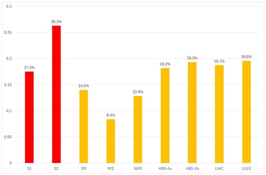 - The Low Income High Cost (LIHC) indicator [51] classifies a household as energy-poor if the following conditions apply simultaneously: (i) its required equivalized energy expenditure exceeds the national median; (ii) if the household were to spend that amount, its residual income would fall below the official poverty line. In the calculation process, the equivalent income is used (based on the equalized factors of the OECD), while the housing costs (i.e., rent and mortgage payments) is subtracted.