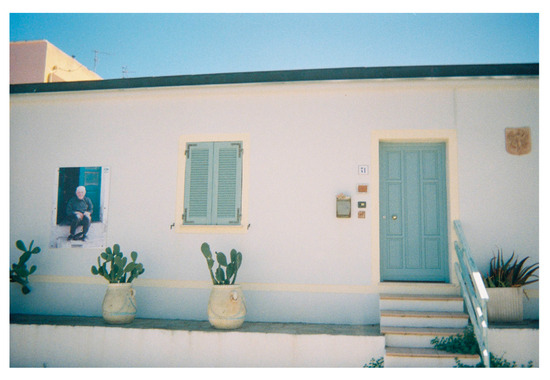 Overall, La Pelosa did not evoke in the locals the same emotional proximity that is suggested in the image of Cala Coscia di Donna. Similarly, the few photographs of Asinara Island also included views of La Pelosa. Participants reported perceiving the two as a single entity, recognizing them as “simply the most famous tourist destinations”. On the other hand, all the other photographs captured an essence that a tourist can only grasp through dialog with residents of Stintino. A pivotal example was the facade of a residence featuring a photograph of a Stintino resident who worked as a fisherman at the Tonnara (photographed by participants). This is an example of the Gente di Tonnara project, which pays tribute to the men and women involved in the Tonnara industry, from the capture phase to the processing stage [116] (Figure 13).