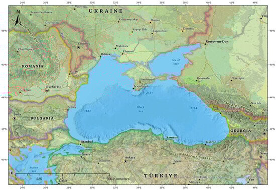 The Black Sea region presents a critical testbed for ORRI implementation. It is a semi-enclosed basin (Figure 2) bordered by six countries—Ukraine, Russia, Georgia, Turkey, Bulgaria, and Romania—with diverse institutional capacities and political systems [9]. This strategic location establishes it as a pivotal hub for international trade, maritime transport, and geopolitical interactions [10].
