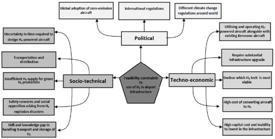 Existing literature on aviation decarbonisation primarily focuses on technological innovations and solutions, often neglecting socio-economic and political challenges. This gap highlights the importance of a more comprehensive approach that incorporates socio-technical and socio-political factors. To address this, the present study applies a feasibility constraints framework—encompassing socio-technical, techno-economic, and socio-political dimensions—to analyse empirical data and systematically identify the multifaceted challenges faced in the aviation sector. This approach enables a more holistic understanding of the barriers to implementing hydrogen technologies and achieving meaningful decarbonisation in the industry [32].