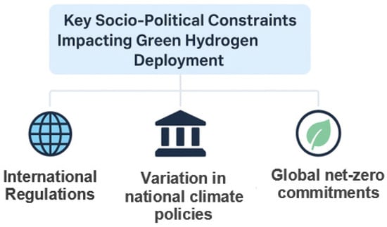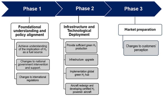 Political challenges in the UK’s pursuit of the H2 strategy for the aviation industry encompass several key aspects. While there is a clear commitment from the UK government to support decarbonisation efforts within the aviation sector, there may be challenges in ensuring consistent and sustained political will over time. Political priorities and agendas may shift, potentially impacting the allocation of resources and support for H2 initiatives in the long term [42]. Furthermore, achieving net-zero emissions in the aviation sector requires coordination and cooperation not only domestically but also on a global scale. As the sector’s emissions are largely attributable to international flights, aligning policies and regulations with other countries poses a significant challenge. Negotiating international agreements and ensuring compliance with global standards for H2 adoption and infrastructure development may face political hurdles and require diplomatic effort [27,43].