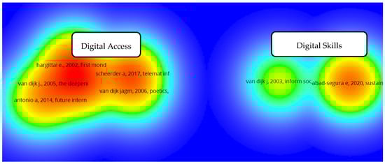 An analysis of keyword co-occurrence in WoS (Figure 2) reveals that terms such as “lifelong learning” and “access” appeared frequently between 2016 and 2018. This reflects a growing concern with lifelong digital learning and equitable access to digital resources as key components for achieving more sustainable urban environments.