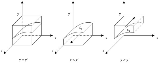 According to the evolutionary stability analysis of consumers’ strategy choices, when y < y*, x < (yrφE2 + yφE2 − yRCIR + CCO − RCO)/yGOS, z = 1 is the evolutionarily stable strategy; conversely, z = 0 is an ESS. Therefore, with the increase in x and y, the probability of consumers purchasing housing decreases from z = 1 to z = 0, so there is a decrease in z with the increase in x and y.