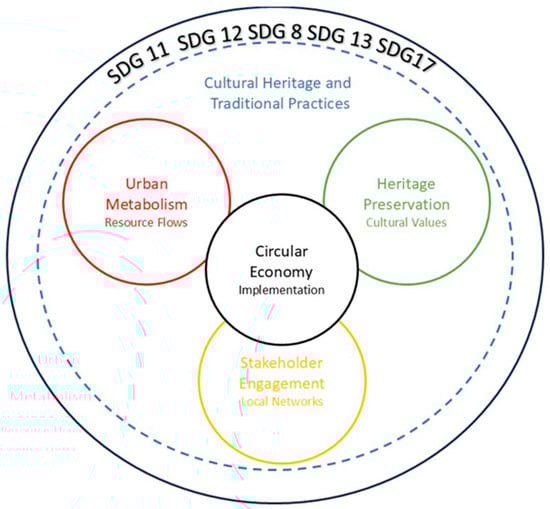The convergence of circular economy principles, urban metabolism analysis, and heritage preservation creates a unique theoretical space for historic small towns. This Integrated Methodological Framework positions cultural heritage as an enabler rather than a constraint for sustainability transitions, while traditional practices serve as foundations for circular economy implementation. The framework explicitly addresses SDG 11 (Sustainable Cities), SDG 12 (Responsible Consumption), and SDG 8 (Economic Growth) through heritage-sensitive approaches that respect both cultural authenticity and environmental sustainability.