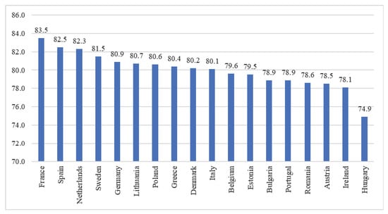 In 2022, a comprehensive analysis of the Inclusive Internet Index (3i) was conducted, measuring countries’ potential to leverage the global network for both individual and collective development. Despite significant progress in making the internet more inclusive across all studied countries, “digital inequality” remains a pressing issue, although its nature has evolved. While limited network coverage previously posed the main barrier to internet access in low- and lower-middle-income countries, since 2017, there has been substantial expansion in coverage. However, the growth rate of internet users lags behind the pace of network infrastructure expansion, leading to a gap in actual network usage [65]. Figure 1 presents the Inclusive Internet Index for the EU countries in which the cities used in this study are located.