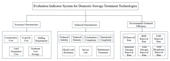 Firstly, three first-level evaluation indicators for wastewater treatment technologies, namely economic characteristics, technical characteristics, and environmental treatment efficiency, were determined through an extensive literature review and field research.