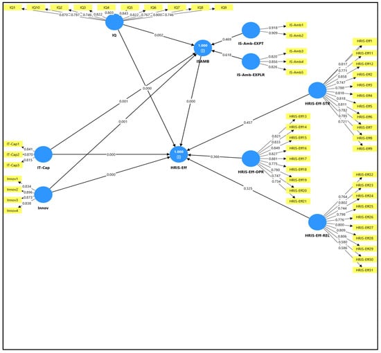 In the face of accelerating digital transformation and AI-driven innovations in the post-COVID-19 era, the effectiveness of Human Resource Information Systems (HRIS) is critical to organizational resilience and sustainable digital transformation in highly regulated sectors. This study examines how information quality, executive innovativeness, and staff IT capabilities influence HRIS effectiveness and evaluates the mediating role of Information System (IS) Ambidexterity, defined as an organization’s ability to explore and exploit its IS resources concurrently. By confirming the impact of organizational enablers on HRIS effectiveness, the study provides theoretical grounding for digital transformation strategies rooted in Resource-Based View (RBV) and Dynamic Capabilities Theory (DCT). Partial Least Squares Structural Equation Modeling (PLS-SEM) using SmartPLS was employed for its strength in modeling complex relationships and validating latent constructs in organizational contexts. Empirical data were gathered from 157 HR leaders across financial institutions in Pakistan. The results confirm that the identified enablers significantly impact both IS Ambidexterity and HRIS effectiveness and also emerge as strategic levers for building resilient, data-driven HRIS frameworks. IS Ambidexterity, a relatively underexplored construct in information systems research, enhances the strategic contribution of HRIS by serving as a dynamic capability that enables organizations to adapt and create sustained value in evolving digital environments. HRIS effectiveness contributes to efficiency, agility, strategic responsiveness, and cost optimization in financial institutions. The findings contribute to theory by integrating IS enablers with dynamic capability mediation, enriching the RBV-DCT interplay. This study provides evidence-based insights for developing economies pursuing sustainable digital transformations.