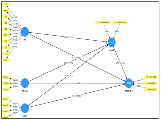 Ref. [77] confirmed information quality significance in electronic green supply chain management (e-GSCM) integration, yet focused on large firms in developed settings. Ref. [78] showed a link to performance but used convenience sampling in Malaysian firms, making a methodological gap for the current study. Ref. [79] emphasized IQ’s role in ESG alignment through secondary data. Compared to these, this study applies an organizational-level analysis with probability sampling in a regulated, developing market context of Pakistan’s financial sector, where the strategic relevance of IQ in post-implementation HRIS performance remains underexplored.