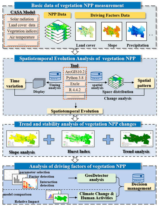 - Zhao, B.; Ma, Z.; Li, P.; Xu, Y.; Zhang, G.; Ma, W.; Ren, Z. Drivers of Net Primary Productivity Spatio-Temporal Variation in Ningxia, China. Forests 2023, 14, 1170. [Google Scholar] [CrossRef]