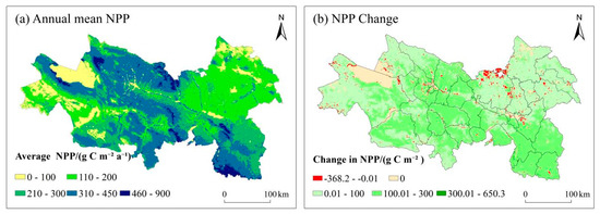 4.1. Spatiotemporal Changes in Vegetation NPP in the LanXi Urban Agglomeration