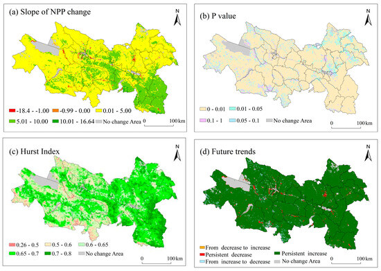 - Temporally, about 95% of the region experienced increasing NPP, especially in the central and southeastern zones, whereas slight declines appeared in the northwest and urban expansion areas. The upward trend demonstrated strong persistence.