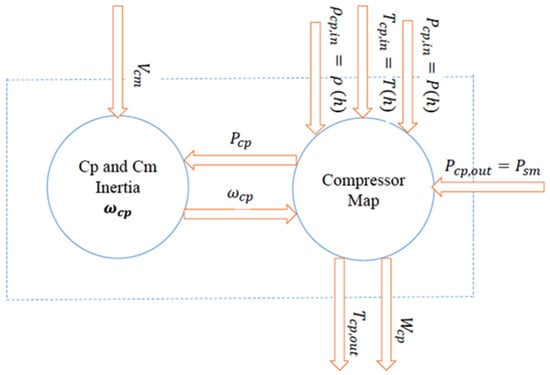As shown in Figure 3, the schematic of the compressor model consists of two main components: the compressor map and the compressor motor. The compressor map defines the thermodynamic properties, including density, pressure and temperature in the inlet, as a function of altitude. A motor provides the necessary power to drive the compressor, ensuring it meets the required performance demands.