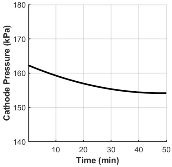 Figure 7 illustrates the variation in cathode pressure over time. As altitude rises, cathode pressure—comprising both nitrogen and oxygen partial pressure—decreases due to the decline in ambient pressure at higher altitudes.