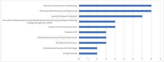Figure 2 shows that the sources that have published the most articles are Resources, Conservation and Recycling and ACS Sustainable Chemistry & Engineering, with eight articles each, followed by the Journal of Cleaner Production, with seven.