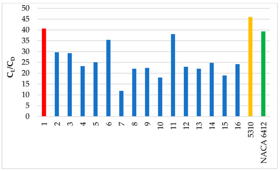 A1B1C1D2E2 (5310) and NACA 6412 airfoil performance ratio.