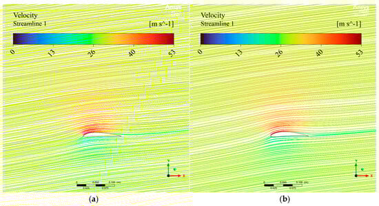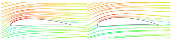 Comparison of the new airfoil 5310 (a) and NACA 6412 (b) airfoil streamlines.
