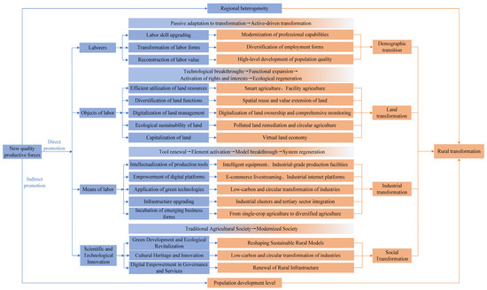 Mechanisms of influence of new quality productivity forces on rural transformation.