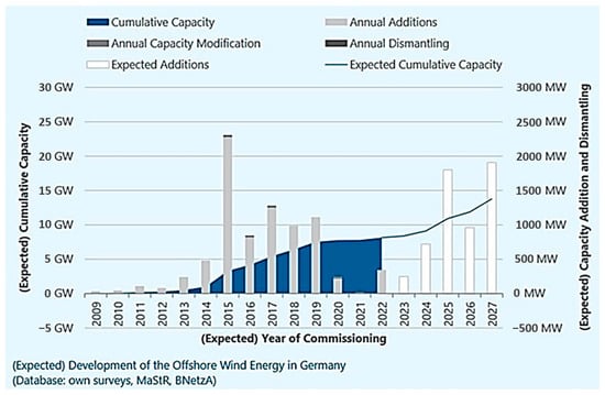Development of OW energy in Germany (2009–2027). (Source: DEUTSCHE WINDGUARD, Varel, Germany, 2023).