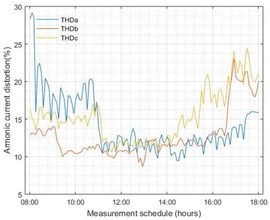 Figure 5 shows that total harmonic distortion remains within acceptable limits (5–20%), depending on the relative impedance at the connection point. Since UDI’s contracted demand does not exceed 1 MW, it is currently exempt from penalties related to harmonic distortion.