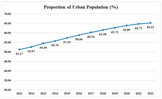 From 1949 to 1980, due to the consistently low economic levels, ideological issues, and strict household registration systems, urbanization in China did not receive due attention, and the rural economy dominated, with the urbanization rate below 20%. Following the economic reforms initiated in the 1980s, China experienced significant economic growth and an unprecedented surge in urbanization as large populations migrated to cities. According to data from the National Bureau of Statistics in 2023, China’s urbanization rate reached 65.22% by 2022 [18].
