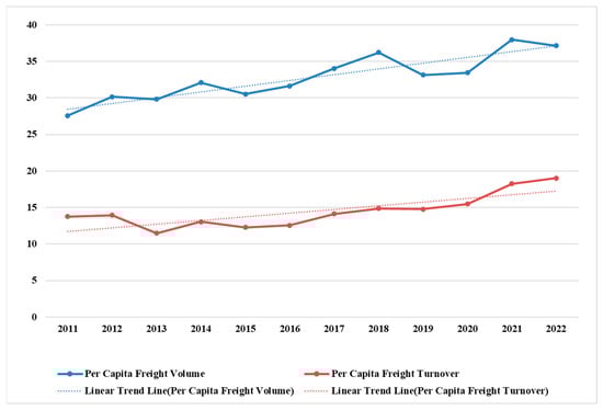 - Per Capita Freight Volume (Tons), illustrating the enhancement of transportation infrastructure due to urbanization, which influences the total volume of material circulation.