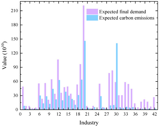 | Industry | Expected Final Demand (10,000 CNY) | Change in Final Demand (%) | Expected Carbon Emissions (10,000 tons) |