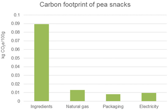 Carbon footprint of pea snack ingredients (kg CO2e per 100 g of packaged product).