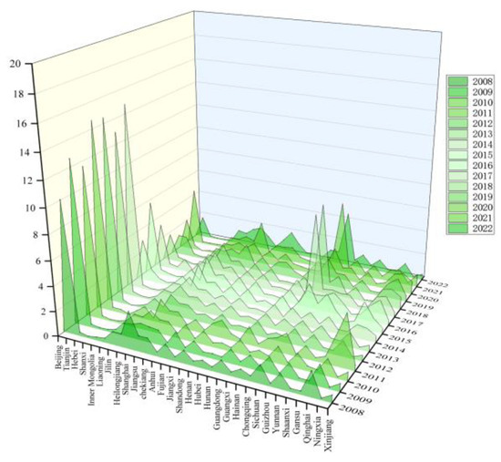 We selected 30 provinces (autonomous regions and municipalities) in China from 2008 to 2022 as our research sample. The research data were obtained from the China Forestry Statistical Yearbook (http://202.99.63.178/c/www/tjnj.jhtml, accessed on 17 May 2025), China Statistical Yearbook (https://www.stats.gov.cn/sj/ndsj/, accessed on 17 May 2025), and China Energy Statistical Yearbook (https://www.macrodatas.cn/article/1147472331, accessed on 17 May 2025). Tibet was not included in the study area because of a lack of data from the Tibet Autonomous Region.