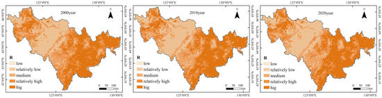 | Land use data | CNLUCC | 30 m | 2000, 2010, 2020 | Resources and Environmental Science Data Center (https://www.resdc.cn/) | 16 April 2025 |