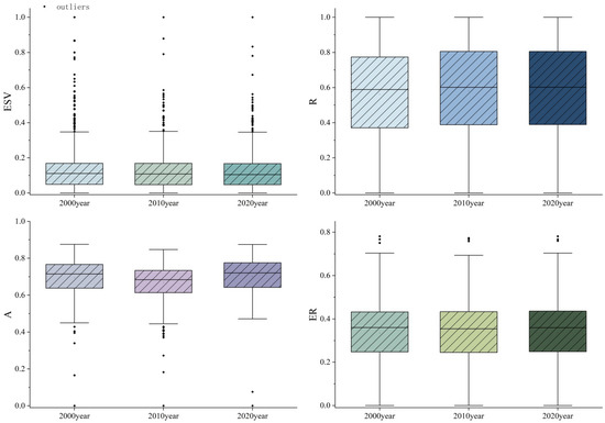 4.1. Characterization of ER Spatio-Temporal Evolution and Analysis of Driving Factors