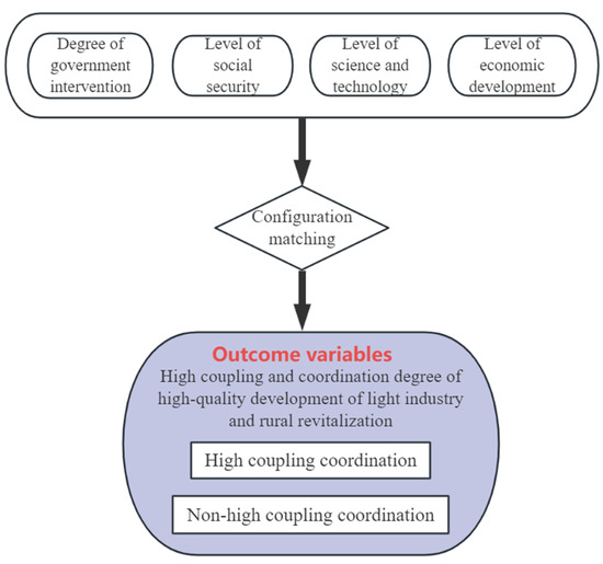 The two systems have not yet reached a state of high-quality coordination by clarifying the coupling relationship between the high-quality development of the light industry and rural revitalization. Therefore, this study is based on the politics, economy, society, and technology analysis framework. It focuses on four core dimensions: government intervention, economic development, social security, and science and technology. In addition, the fsQCA method is used in this study, which takes several influence factors as antecedent variables to explore the causal relationship between the coupling and coordinated development of the high-quality development of the light industry and rural revitalization. In order to make the results more specific and practical, the variables were defined based on the research of relevant scholars.