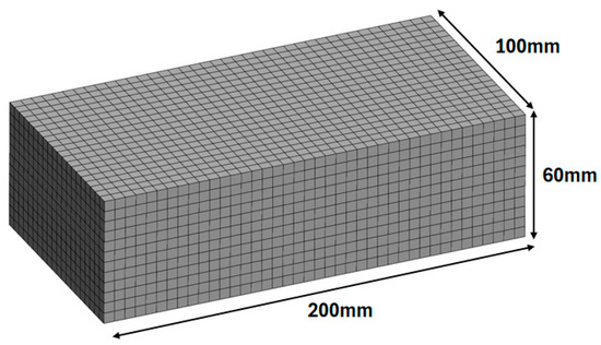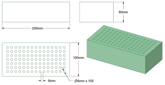 - Geometric modeling: A three-dimensional model of a standard block (200 × 100 × 60 mm) was initially designed using ANSYS SpaceClaim (Version R2 2024), adhering to standard block geometry. A quarter-symmetry approach was adopted to reduce computational effort.