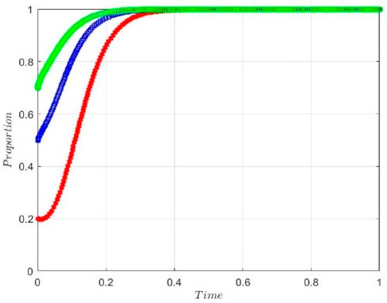Therefore, the replicator dynamic equation for the enterprise agent’s strategy selection is