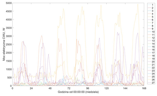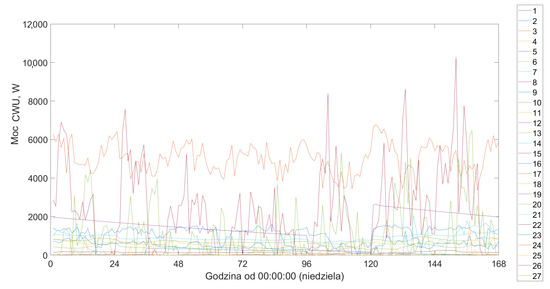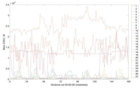 Weekly profile of power supplied by the central heating systems for DHW purposes.