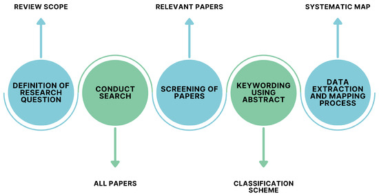 - Petersen, K.; Feldt, R.; Mujtaba, S.; Mattsson, M. Systematic Mapping Studies in Software Engineering. In Proceedings of the 12th International Conference on Evaluation and Assessment in Software Engineering (EASE), Bari, Italy, 26–27 June 2008; pp. 68–77. [Google Scholar] [CrossRef]