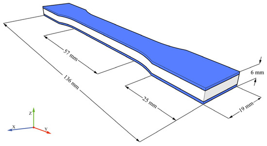 Full-field strain and deformation patterns were characterised using a 3D-DIC technique to capture local deformation and fracture behaviour during tensile loading. The specimens underwent preparation by applying a high-contrast speckle pattern uniformly across their surfaces (Figure 5) for accurate spatial correlation of sequential images taken throughout mechanical testing.