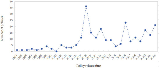 Central-level NDEM policies were analyzed from 1949 onwards. As no relevant central-level policy documents were available prior to 1954, the study period was set from 1954 to 2022. These policies encompass laws, regulations, directives, provisions, decisions, methods, opinions, programs, norms, notifications, announcements, and plans issued by the central government. Industry-specific technical specifications, standards, guidelines, work summaries, analysis reports, annual work plans, annexes, checklists, and supplemental specifications were excluded from the analysis.