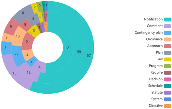 China’s NDEM policies can be categorized according to their administrative authority. The first category includes policies issued by the National People’s Congress (NPC) and its Standing Committee, which primarily consist of laws and major decisions, such as the Law of the People’s Republic of China on Earthquake Prevention and Disaster Reduction. With only eight policies in this category, these documents hold the highest authority and influence, although they account for just 3.2% of the total.