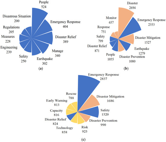 High-frequency keywords in policies from this period include “disaster,” “emergency response,” “mitigation,” “earthquake,” “prevention,” and “monitoring” (see Figure 4b), highlighting three focal areas: “disaster emergency response,” “prevention,” and “disaster relief and mitigation” (see Figure 5b). Since the Wenchuan earthquake, “disaster prevention” and “disaster mitigation and relief” have remained primary concerns. During the Wenchuan earthquake, China’s capacity for earthquake early warning, prevention, and emergency responses was relatively underdeveloped, leading to unnecessary casualties and losses. The experience underscored the need to strengthen early warning and response capabilities and to increase the public awareness of disaster preparedness and self-help skills.