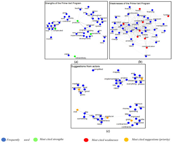 Strengths (a), weaknesses (b), and suggestions (c) raised by the actors with regard to the Prime-Vert program according to the perception of the actors.