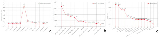 (a) Comprehensive importance values of genes of different spatial types; (b) comprehensive important values of different gene loci; (c) importance values of different spatial genes.