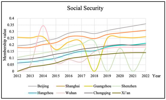 Addressing Social Security Gaps. There remains considerable potential for improving social services in Guangzhou and Shenzhen. Notably, Shenzhen’s education membership value in 2022 was 0.363, significantly lower than its economic (0.802) and environmental (0.803) membership values. The social security and education gaps in Guangzhou and Shenzhen stem from rapid population growth, uneven resource allocation, and institutional barriers, leaving services behind economic progress. To address these issues, cities should enhance social security and public service access for migrant workers and the floating population; strengthen government supervision and improve labor laws to protect vulnerable groups, especially where services are market-driven; expand the coverage and inclusiveness of social welfare programs; and lastly, improve employment and housing security and safeguard the rights of freelancers. These measures will help build a more comprehensive and equitable social security system for all urban residents.
