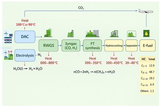 - Colelli, L.; Segneri, V.; Bassano, C.; Vilardi, G. E-fuels, technical and economic analysis of the production of synthetic kerosene precursor as sustainable aviation fuel. Energy Convers. Manag. 2023, 288, 117165. [Google Scholar] [CrossRef]